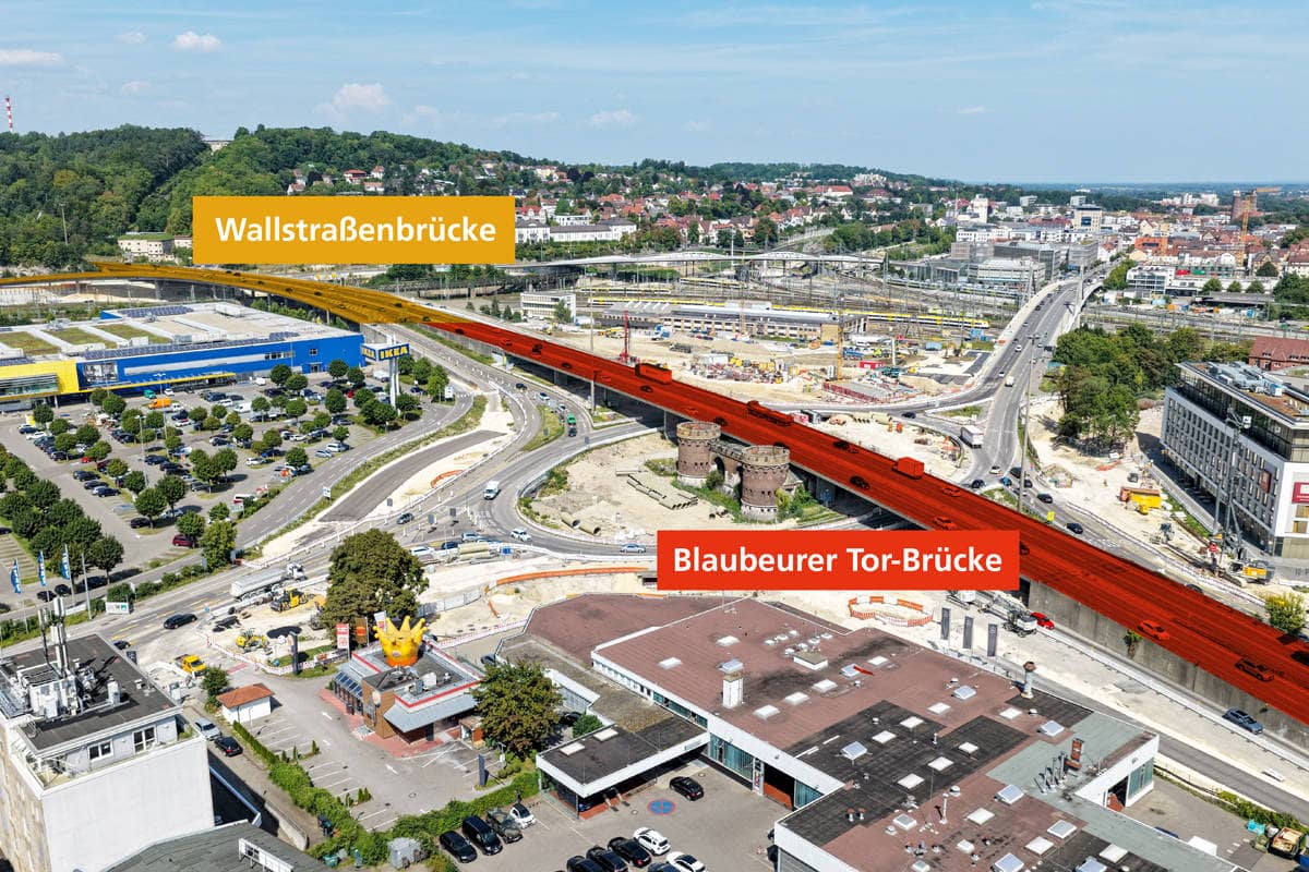 Ab Freitag, 28.11.2025, um 18 Uhr, wird die B10 Richtung Süden für ca. vier Jahre gesperrt. Die Wallstraßenbrücke wird in dem Zeitraum erneuert und die Blaubeurer Tor-Brücke durch einen Tunnel ersetzt. Gleichzeitig wird auch der Ringverkehr am Blaubeurer Tor aufgelöst und in zwei mit Ampelanlagen gesteuerte Kreuzungen umgebaut.