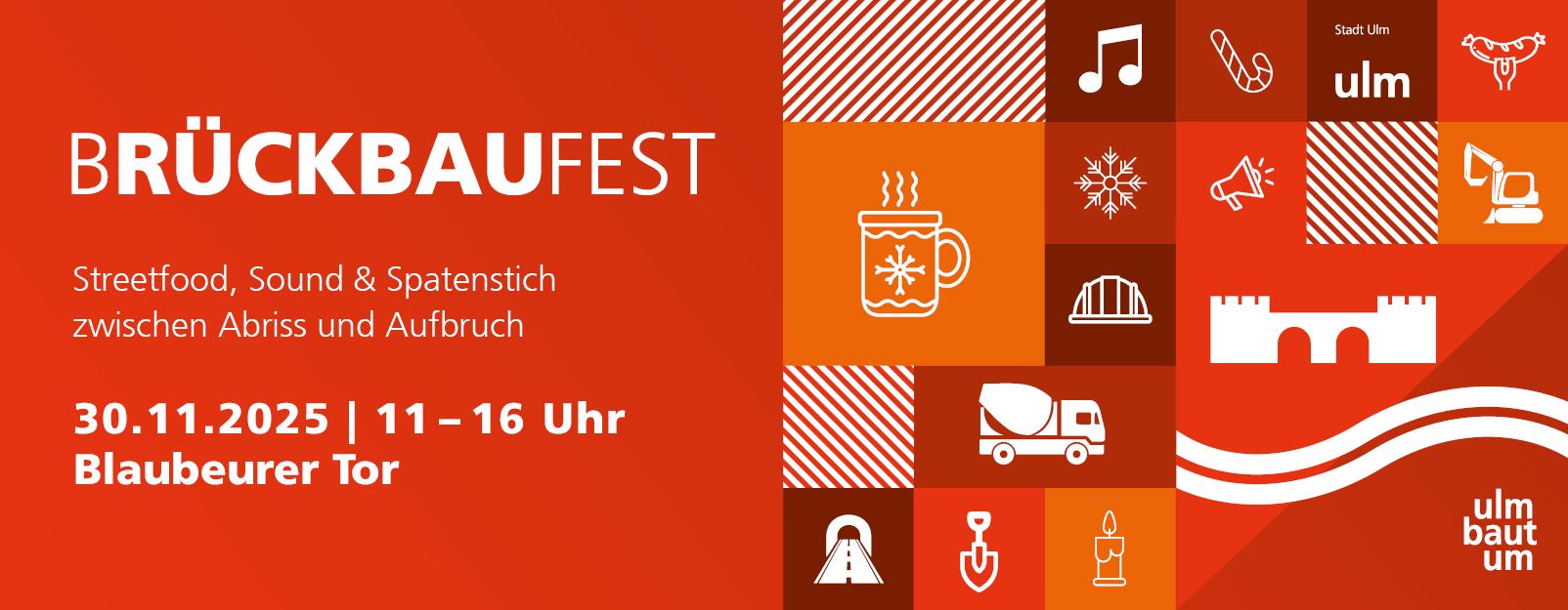 Wir laden Sie herzlich ein zum großen Bürgerfest am Blaubeurer Tor am ersten Adventssonntag, 30.11.2025, von 11:00 bis 16:00 Uhr. Feiern Sie zusammen mit Verkehrsminister Winfried Hermann, Regierungspräsident Klaus Tappeser und Ulms Oberbürgermeister Martin Ansbacher den Spatenstich für die neue Wallstraßenbrücke und den Blaubeurer Tor-Tunnel.